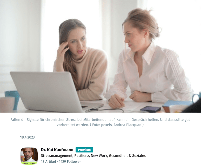 Oft wollen Führungskräfte in meinen Trainings wissen: Wie erkenne ich, dass ein Mitarbeiter möglicherweise unter chronischem Stress leidet, auf einen Burnout zusteuert? Und Mitarbeiter fragen: Wie merke ich, wenn ich meine Grenzen dauerhaft überschreite? Einige Antworten und Impulse hierzu findet ihr in meinem Artikel…