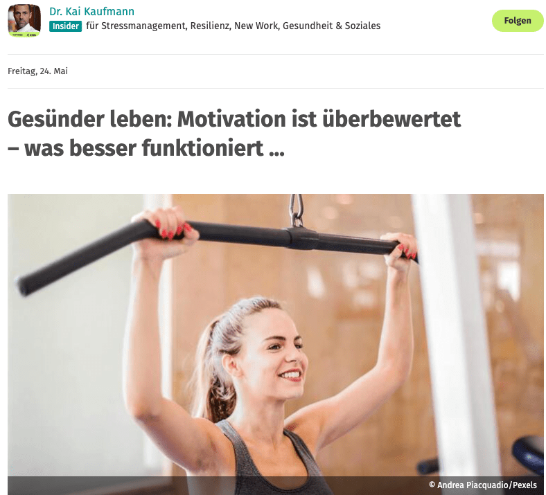Wenn ich jedes Mal darauf warte, dass ich Lust auf eine Jogging-Runde bekomme, werde ich voraussichtlich nicht sehr häufig laufen. Klingt das bekannt? Oft hoffen wir darauf, irgendwann motiviert zu sein, in die Hufen zu kommen und gesünderes Verhalten in die Tat umzusetzen. Doch die Motivation stellt sich viel zu selten ein. Und so bleibt wieder mal alles beim Alten. Was also funktioniert besser als die Warterei auf Lust oder Motivation? Hier geht’s zu meinem Artikel …