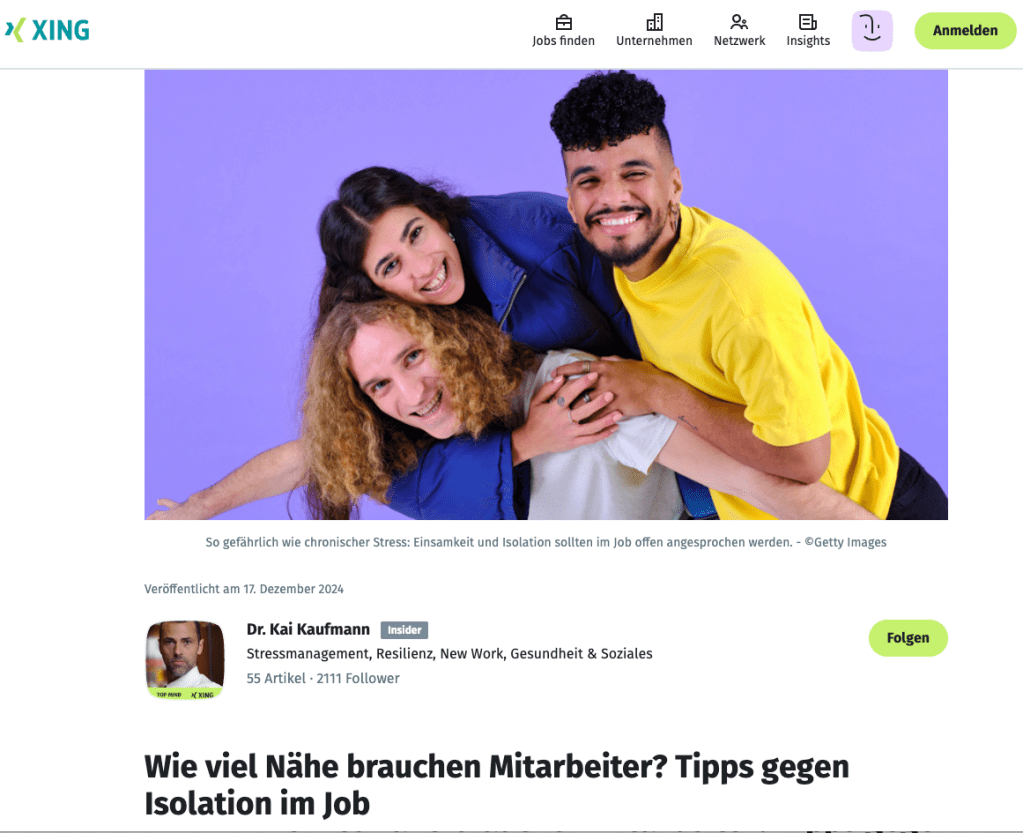 Jeder Zweite der 18- bis 35-Jährigen empfindet Einsamkeit und jeder Vierte der mobil Arbeitenden fühlt sich isoliert, zeigen aktuelle Studien. Dabei macht Einsamkeit so krank wie chronischer Stress: 6 Tipps gegen die Isolation im Job und was am besten dagegen hilft…
