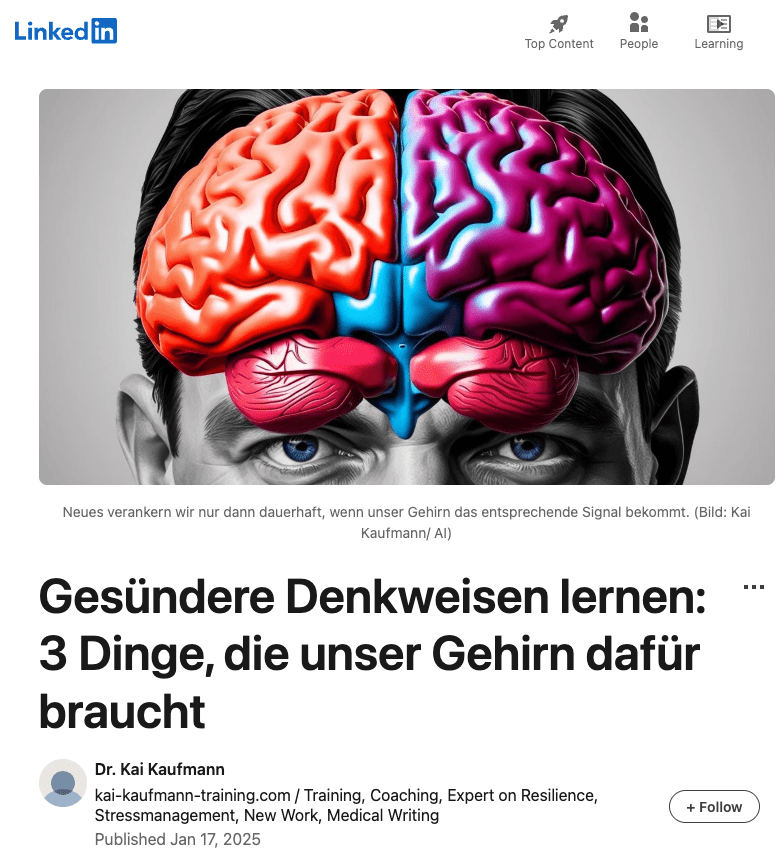 Wie können wir neue Denkweisen oder Routinen in unserem Gehirn verankern? Die nötigen neuen Vernetzungen in unserem Gehirn entstehen nicht einfach, nur weil wir die entsprechenden Gedanken haben.