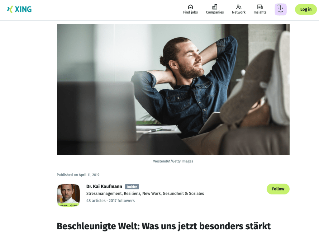 Wie Sie trotz permanenter Veränderungen im Job Ihre innere Balance bewahren, lesen Sie in meinem Artikel als XING-Insider für New Work, Stressmanagement und Resilienz – Beschleunigte Welt: Was uns jetzt besonders stärkt. Lesen Sie hier meinen Artikel …